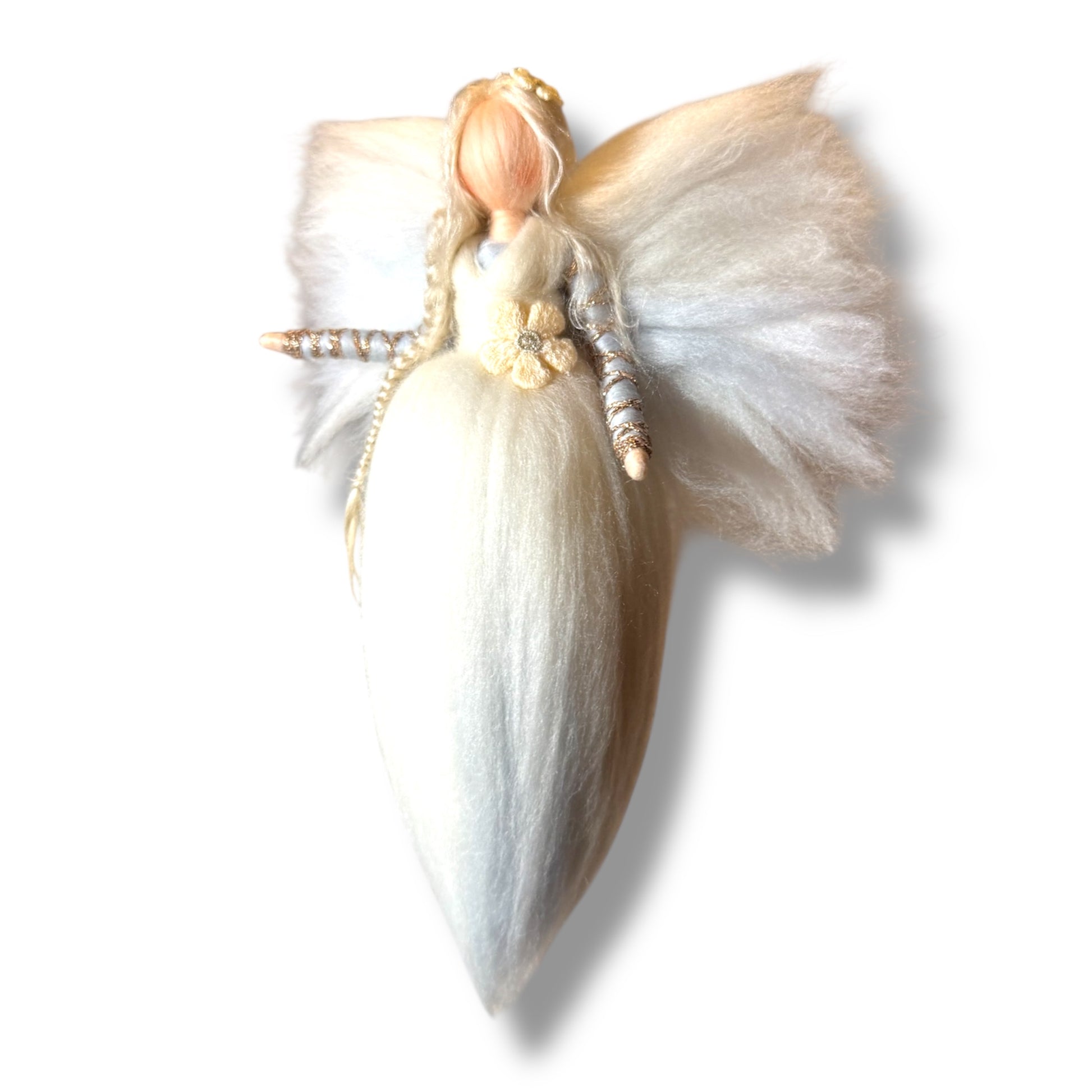 Disse uldengle i Waldorfstil er en enkel, men elegant dekoration, der taler til både hjerte og sjæl, og de er ideelle for dem, der sætter pris på håndlavet kvalitet.